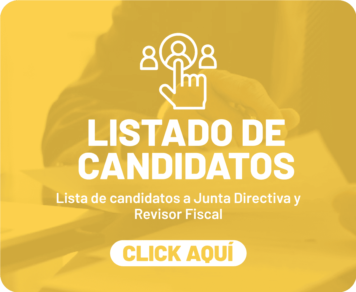 Cada 4 años se realizan elecciones de Junta Directiva y Revisor Fiscal. Este año se realizarán las elecciones para el periodo 2022-2026. El 1 de diciembre de 2022 se realizarán las elecciones por los afiliados que hacen parte del censo electoral.